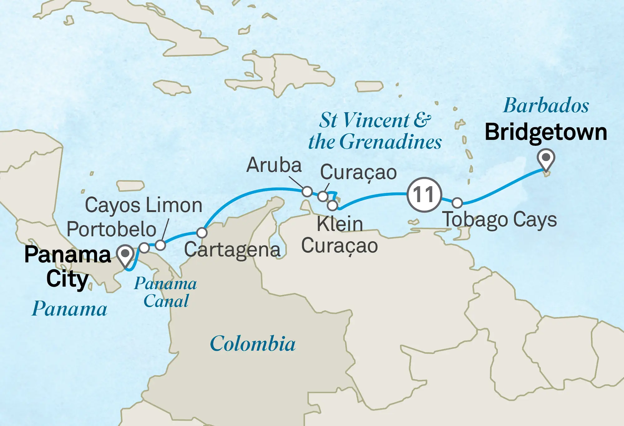 An Tag 17 erreicht das Schiff Cocos Island. Die zu Costa Rica gehörende Insel wurde 1997 aufgrund ihres tropischen Regenwaldes und ihres vielfältigen Meeresökosystems zum Weltkulturerbe erklärt. Einen Besuch wert sind die einsamen Sandstrände mit kristallklarem Wasser, das von Korallenriffen umgeben ist. Nach einem abschließenden letzten Tag auf See wird schließlich der Zielhafen Panama City erreicht. Dort könnt ihr noch einen kompletten Tag auf Erkundungstour gehen, da die Ausschiffung erst am nächsten Morgen stattfindet.