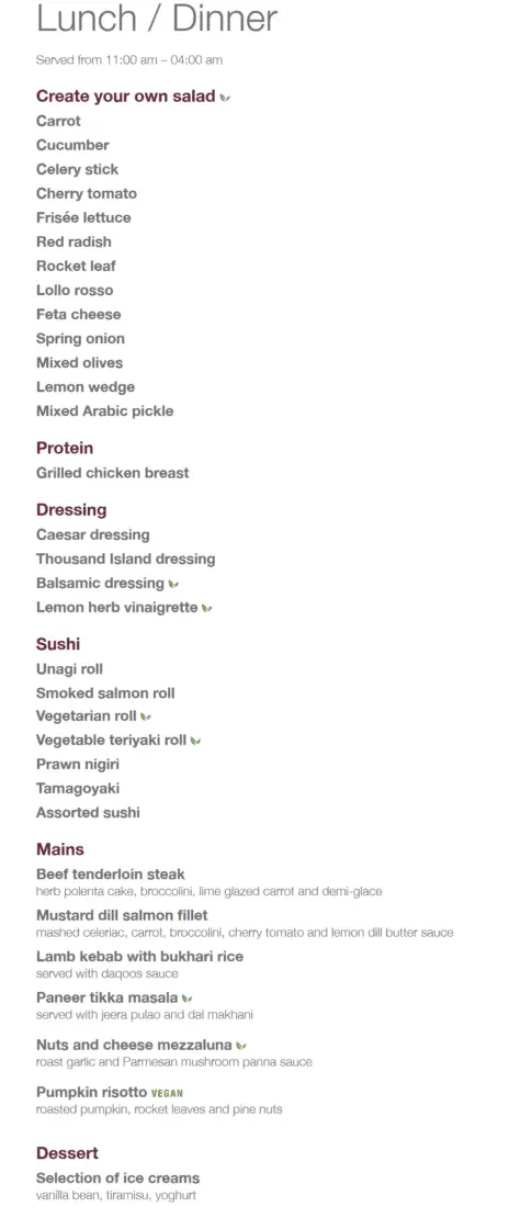 Die aktuelle Speisekarte für Frühstück, Mittag und Dinner kann stets hier abgerufen werden. Es scheint zumindest jeden Monat etwas Variation zu geben.