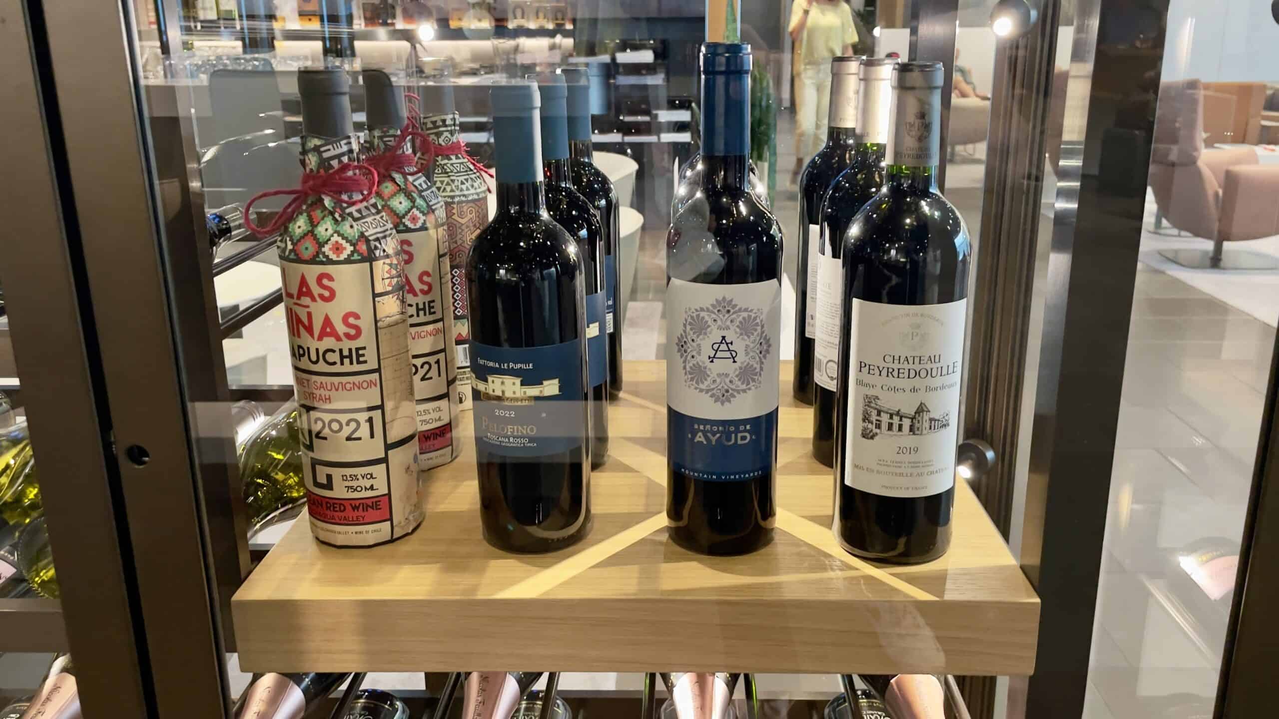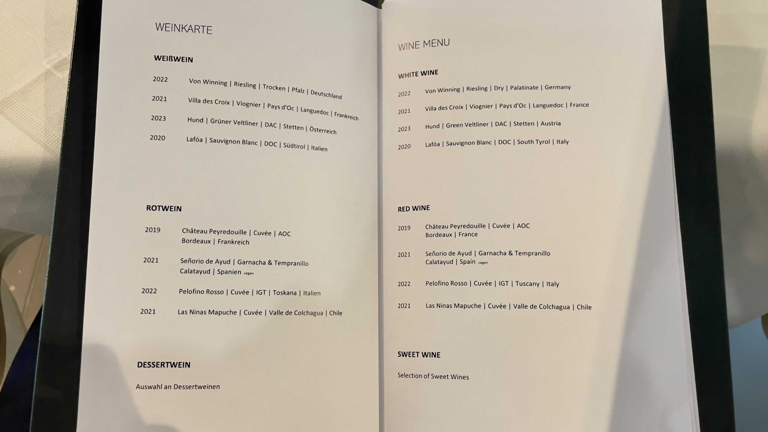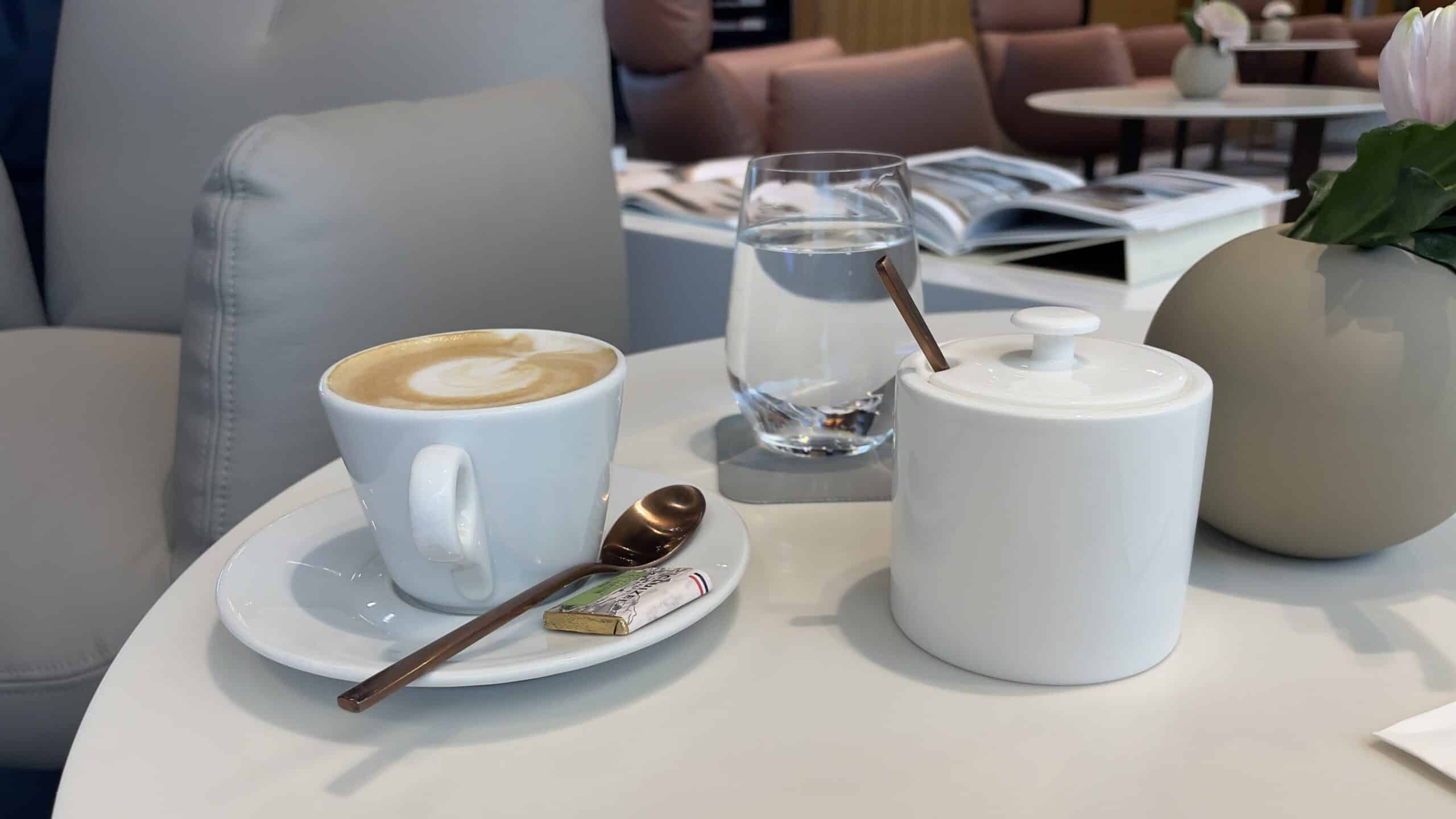 Auch die Weinauswahl ist soweit gelungen. Dabei steht die Präsentation der Weine im gläsernen Weinkühler jedoch im Vordergrund. Dieser zeigt nicht nur auf schön anmutende Weise die Auswahl an Weinen, sondern ist ein Designhighlight der Lounge. Last but not least konnte auch der Cappuccino überzeugen.