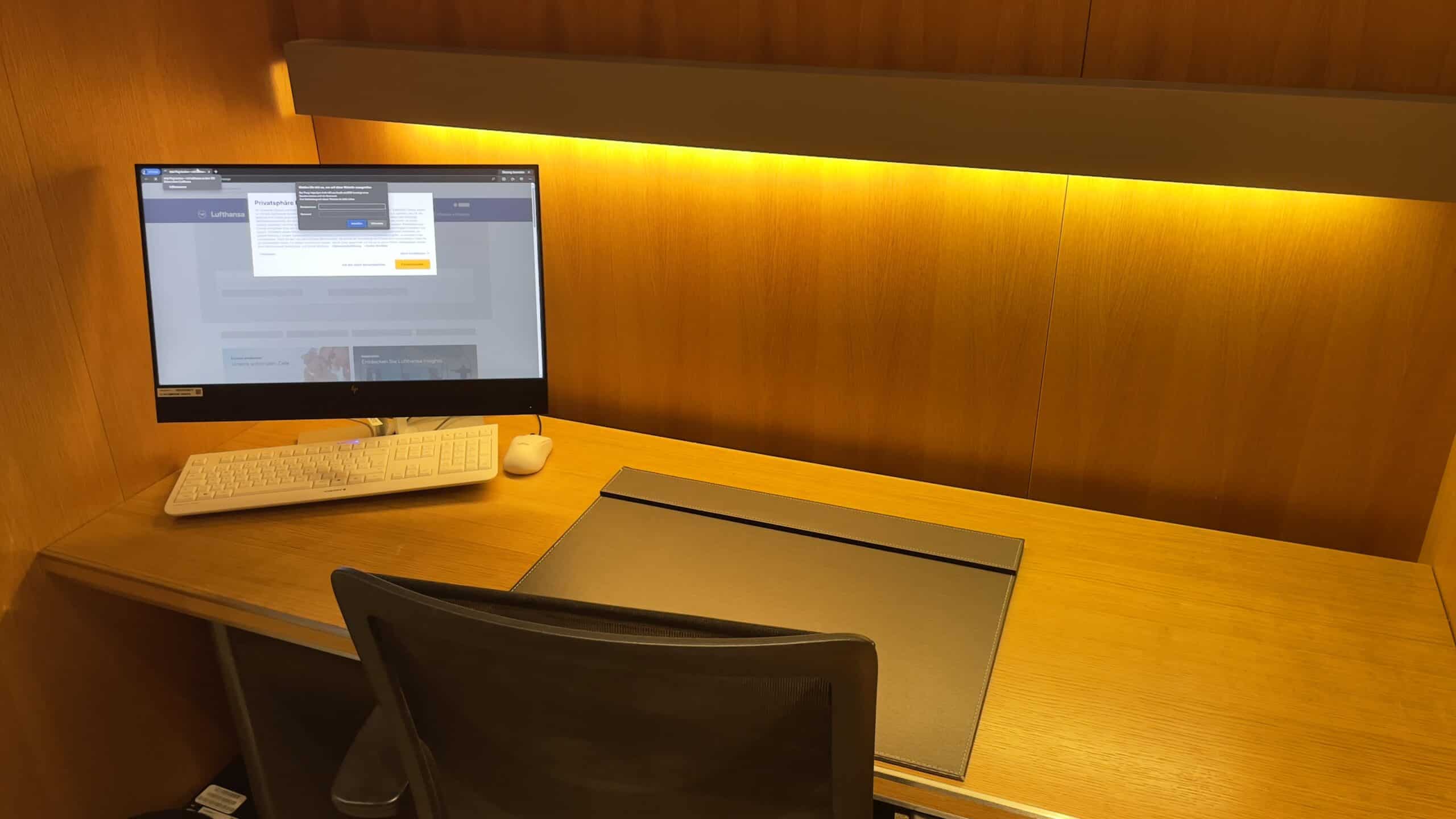 Das Internet ist wie auch in den anderen Lufthansa-Lounges von der Telekom und funktioniert problemlos. Zudem verfügen die Kabinen aber auch über einen LAN-Anschluss, sollte man das benötigte Kabel dabeihaben. Im Vergleich zur Satelliten-Lounge ist die Anzahl an Arbeitskabinen hier jedoch deutlich geringer, sodass unter Umständen auch einmal alle Kabinen belegt sein könnten.