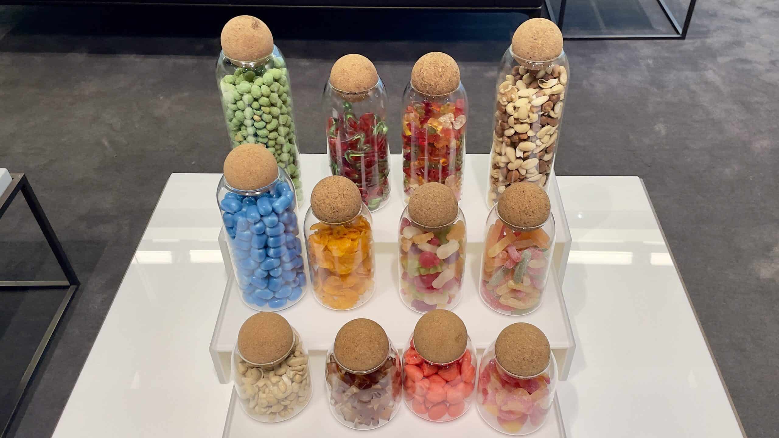 Neben den Getränken und Snacks auf den Karten gibt es zudem auch wie in anderen Lufthansa First Class Lounges die Möglichkeit, sich Pralinen oder andere süße/salzige Snacks selbstständig zu nehmen. Dabei sei jedoch wieder angemerkt, dass die Positionierung dieser inmitten einer Sitzgelegenheit bei entsprechender Auslastung ein unangenehmer Eingriff in die Privatsphäre der dort sitzenden Gäste sein kann.