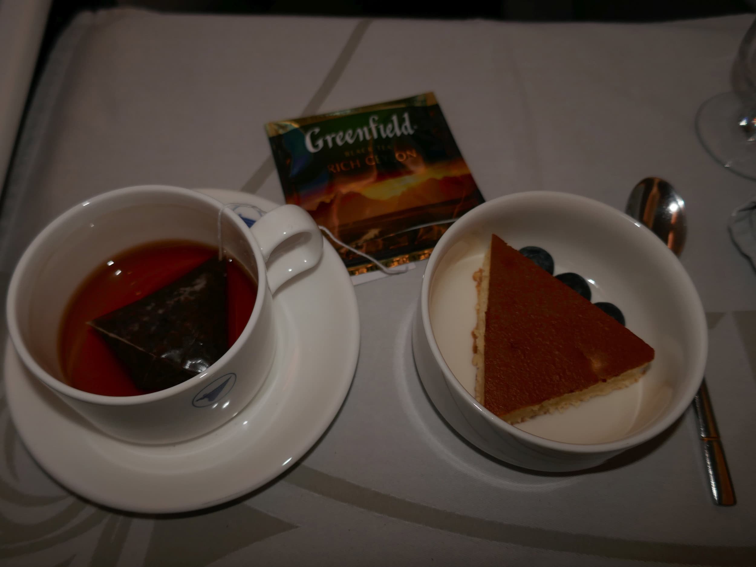 Der zweite Essensdurchgang erfolgte exakt 2 Stunden vor der Landung. Das Licht wurde angemacht und jeder unweigerlich geweckt. Das Frühstück bestand aus einem gefüllten Omelette mit recht knusprigem Bacon, einem Porridge und etwas Obst.