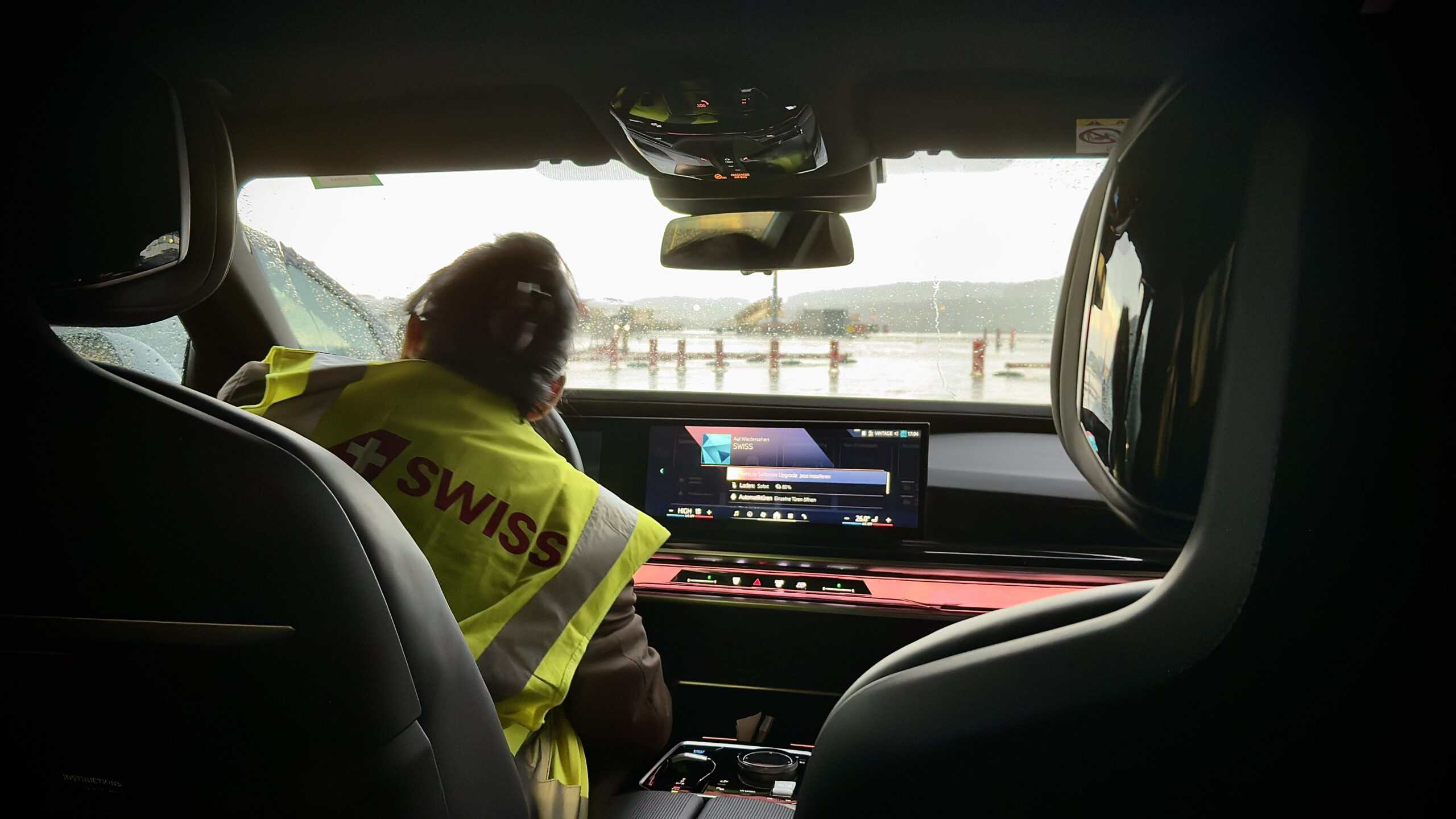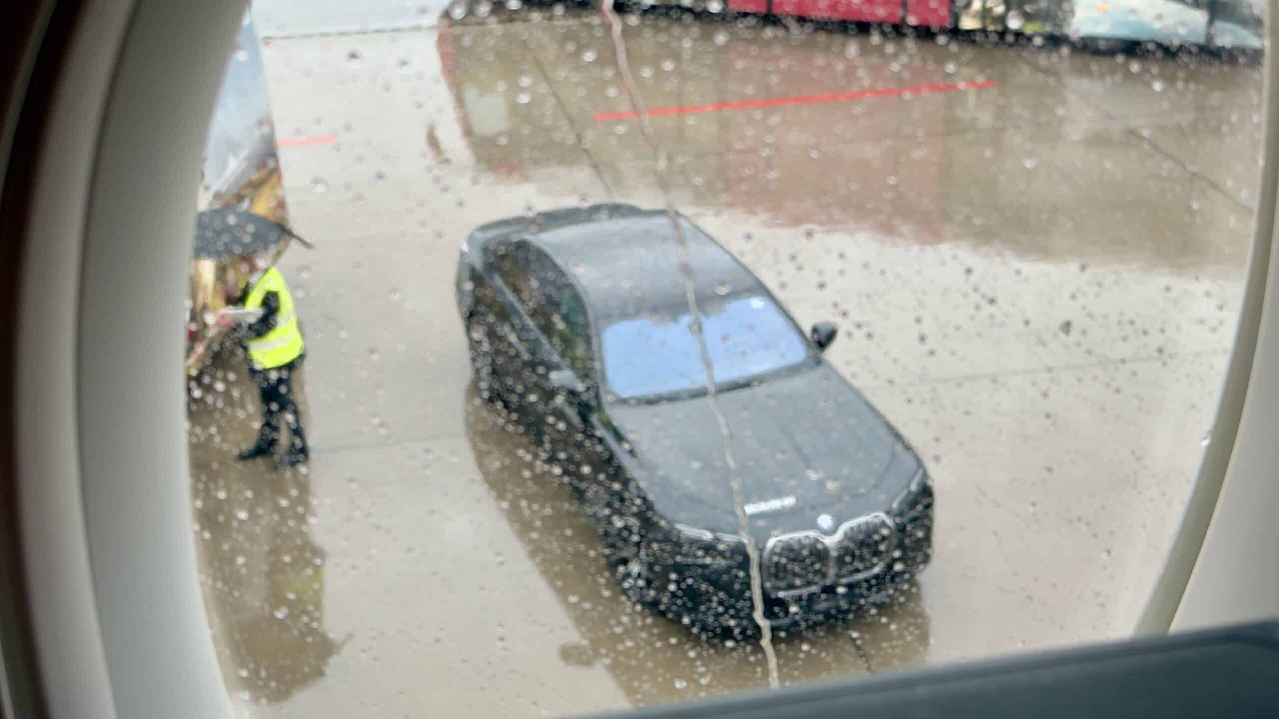Beim Betreten der Lounge wird mit einem ein Zeitpunkt für den exklusiven Transfer ausgemacht. Dieser ist zumeist gleichzeitig zur normalen Boardingzeit. Von der Lounge wird man dann mit einem der Aufzüge zur bereitstehenden BMW i7 Limousine gebracht. Wenn es regnet, selbstverständlich unter einem Schirm.