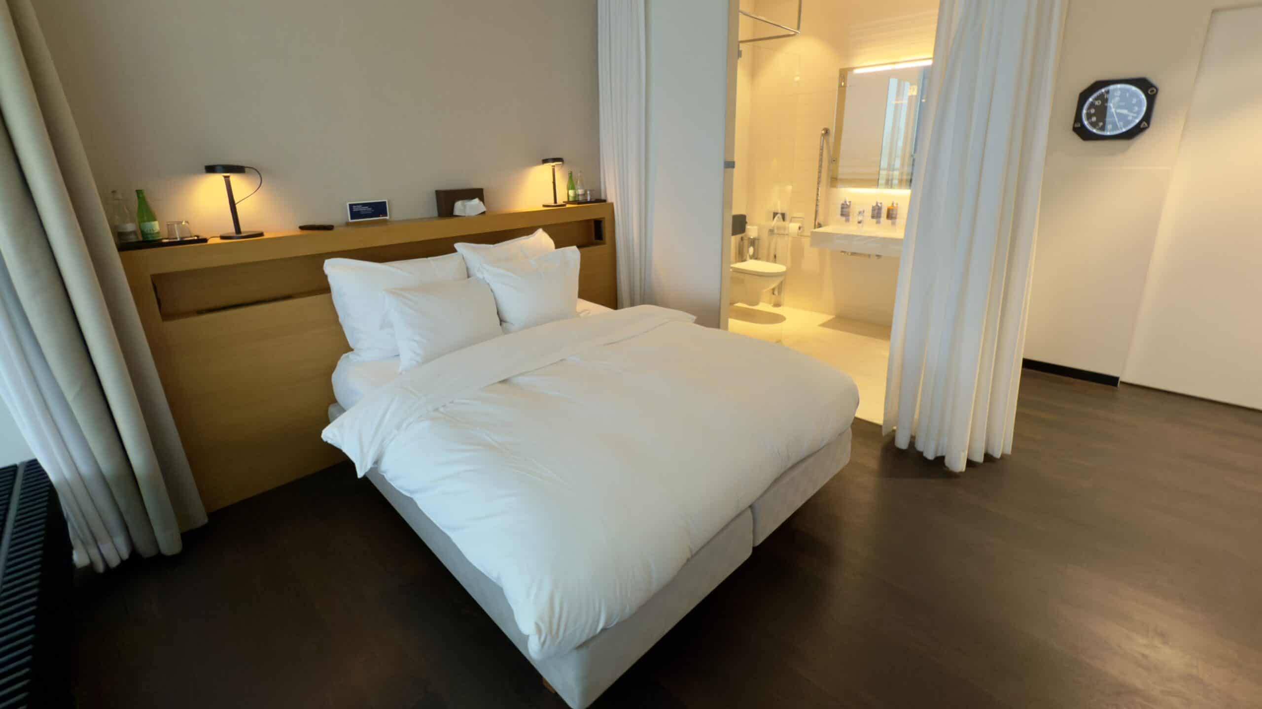 Das Bett habe ich bei vergangenen Aufenthalten als sehr bequem empfunden und von den Geräuschen des Flughafens war nichts zu hören. Leider muss man den Vorhang bei Benutzung des Zimmers geschlossenhalten, um die Privatsphäre für sich selbst und Gäste der Terrasse zu gewährleisten. Eine Maximalnutzdauer wurde mir damals nicht kommuniziert.