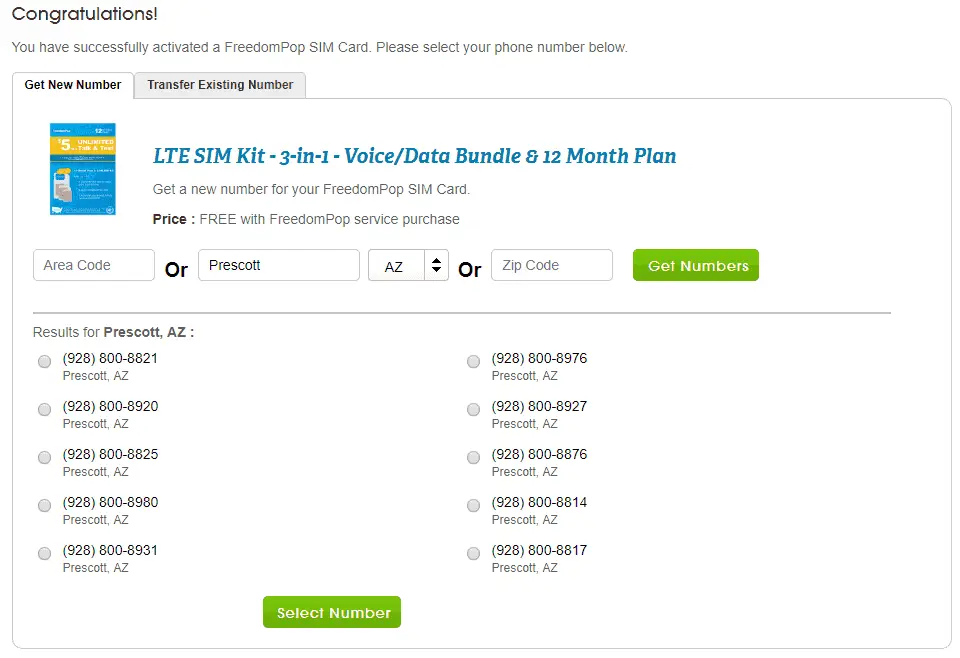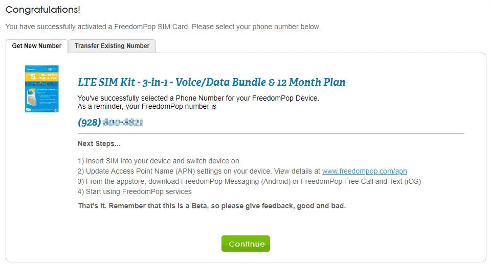 - Wieder zu FreedomPop wechseln und die Nummer dort eingeben + bestätigen.