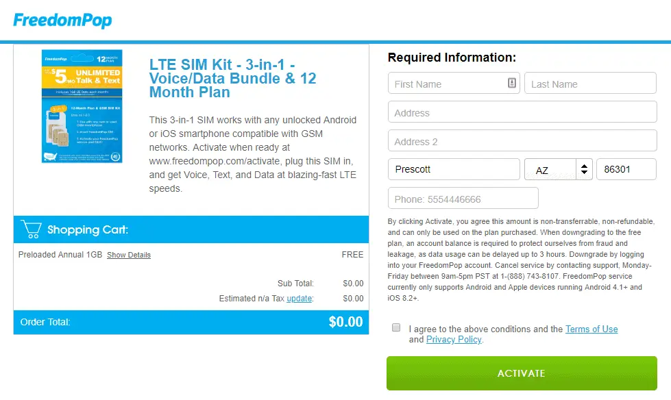 - Keine Kreditkarte notwendig: Die Karte kann im Best Buy mit Kreditkarte, per PayPal oder bar bezahlt werden (bei Amazon nur mit Kreditkarte). Bei FreedomPop selbst müsst ihr keine Zahlungsdaten hinterlegen.
