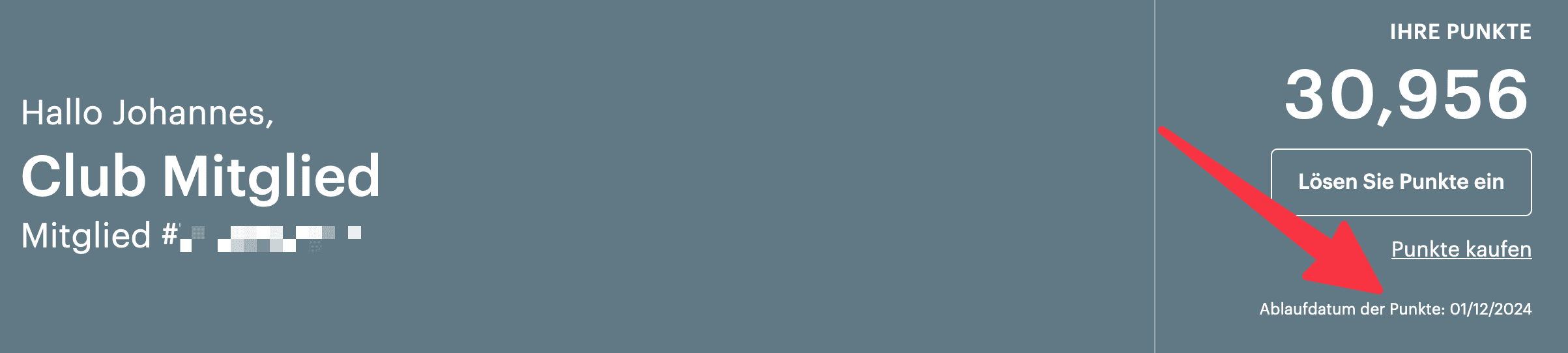 Verfall von Punkten: Die Punkte der Club-Mitgliedschaft (siehe Mitgliedervorteile, einschließlich Mitgliedschaftsstufen, hier) verfallen, wenn Ihr Mitgliedskonto für einen Zeitraum von zwölf (12) Monaten oder länger inaktiv ist. Das bedeutet, dass Ihre Punkte von Ihrem Konto entfernt werden und nicht mehr eingelöst werden können. Um Ihre Punkte zu behalten, müssen Sie in einem Zeitraum von zwölf (12) Monaten bei mindestens einer Transaktion über Ihr Mitgliedskonto Punkte gesammelt oder eingelöst haben. Die Inanspruchnahme der jährlichen Gratis-Übernachtung für IHG One Rewards Kreditkarteninhaber stellt keine Sammel- oder Einlöse-Transaktion dar, die den Punkteverfall verhindert. Die Punkte von Elite Mitgliedern verfallen nicht, solange die Elite-Mitgliedschaft aufrechterhalten wird.