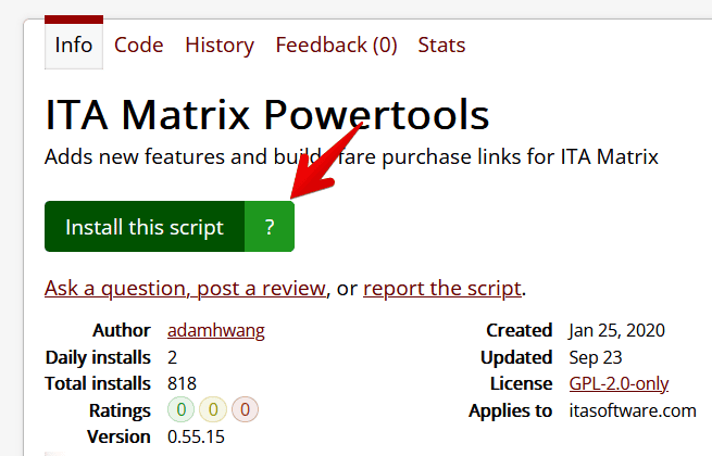 Schritt 2: Das Nutzerscript aufrufen und separat installieren: https://greasyfork.org/da/scripts/395661-ita-matrix-powertools