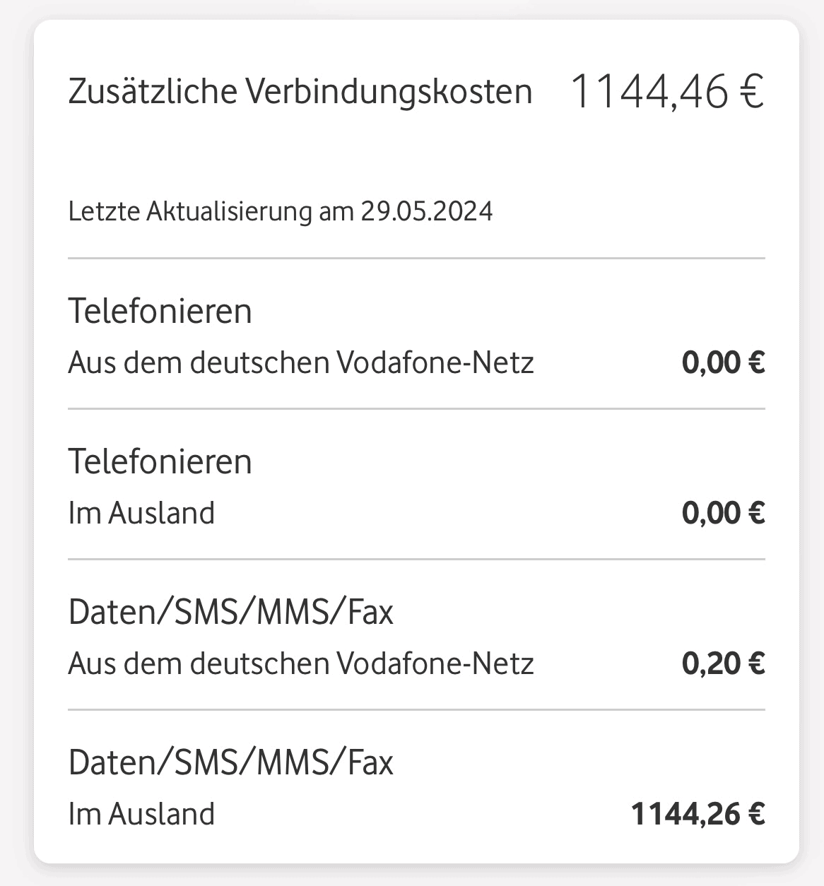 Ein Blick in die Vodafone App ließ mich fast vom Stuhl fallen: