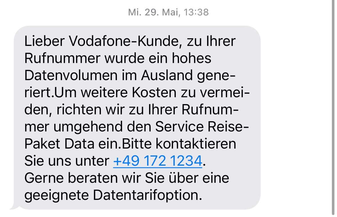 Erst einmal habe ich mir nichts weiter dabei gedacht. Nach dem Mittagessen bekam ich aber eine weitere SMS von Vodafone: