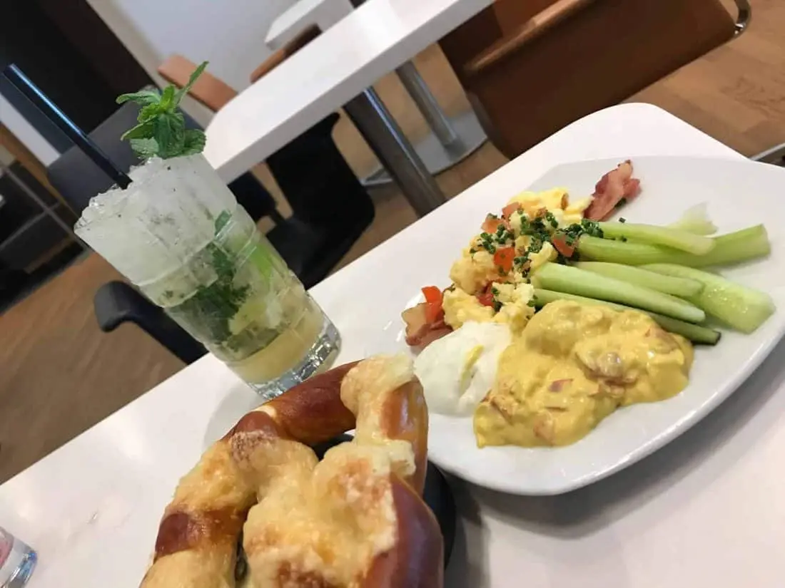 Vielleicht liegt es nur an der Optik und mein Geschmack täuscht mich – aber ich habe das Gefühl: Die warmen Speisen sind hochwertiger. So gab es kürzlich in der Senator Lounge des Münchner Satellitenterminals (L-Gates/Non-Schengen) die Wahl zwischen Schnitzel mit Preiselbeeren, Kichererbsencurry, Chicken Tikka mit Reis und Leberkäse – alle Gerichte haben vorzüglich geschmeckt. Auch das neue warme Frühstücksangebot (bis 11.30 Uhr) überzeugt: Zur Wahl stehen Baked Beans, gebratene Champignons, Grilltomaten, Rösti, Bacon und natürlich Rührei – das neuerdings ausnahmsweise nicht mehr nach Instant-Matschepampe schmeckt.