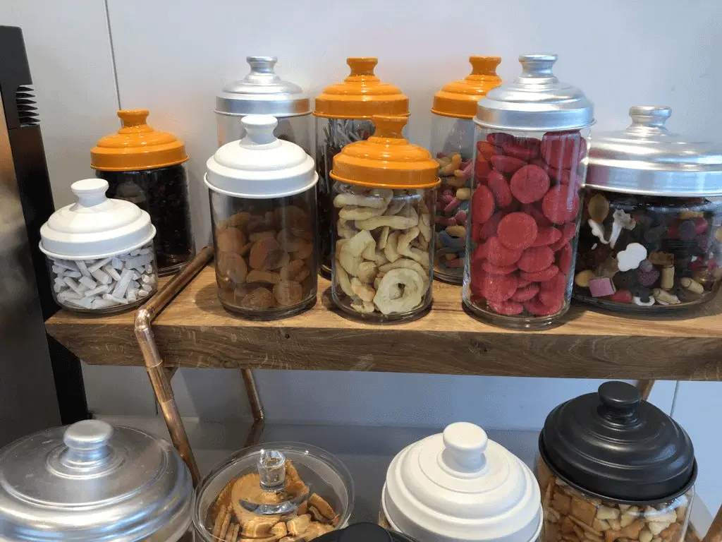Ziemlich cool finde ich auch die neu hinzugekommene Candy Bar und die Dessertvariationen. Neulich gab es zum Beispiel warmen Apfelstrudel mit warmer Vanillesauce – in der Schengen-Lounge:
