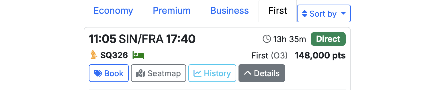 Seats.aero bietet für gleich drei verschiedene Airlines ein Tool zum Finden von First-Class-Verfügbarkeiten. Dargestellt werden folgende drei Airlines: