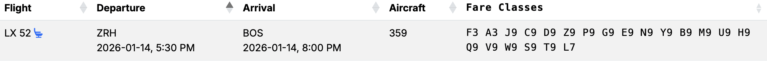 Auch die Auslastung bzw. freien Ticketkontingente kann man sich mittlerweile bei Seats.aero anzeigen lassen. Diese Option kann besonders spannend sein, wenn man als Senator oder HON‑Circle mit der Swiss First Class (oder sogar Senses First Class) fliegen möchte. Dank der noch im Verkauf befindlichen Tickets lassen sich Wahrscheinlichkeiten für Prämientickets erstaunlich gut ableiten.