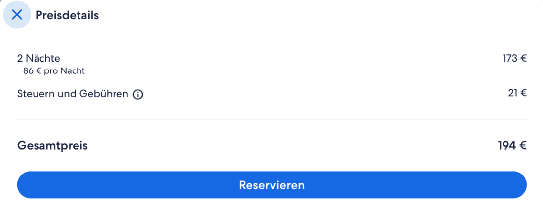 Bei Buchung über Expedia würde für die gleiche Zimmerkategorie bei Buchung einer flexiblen Rate ohne Frühstück ebenfalls der reguläre Zimmerpreis in Höhe von 194€ berechnet werden.