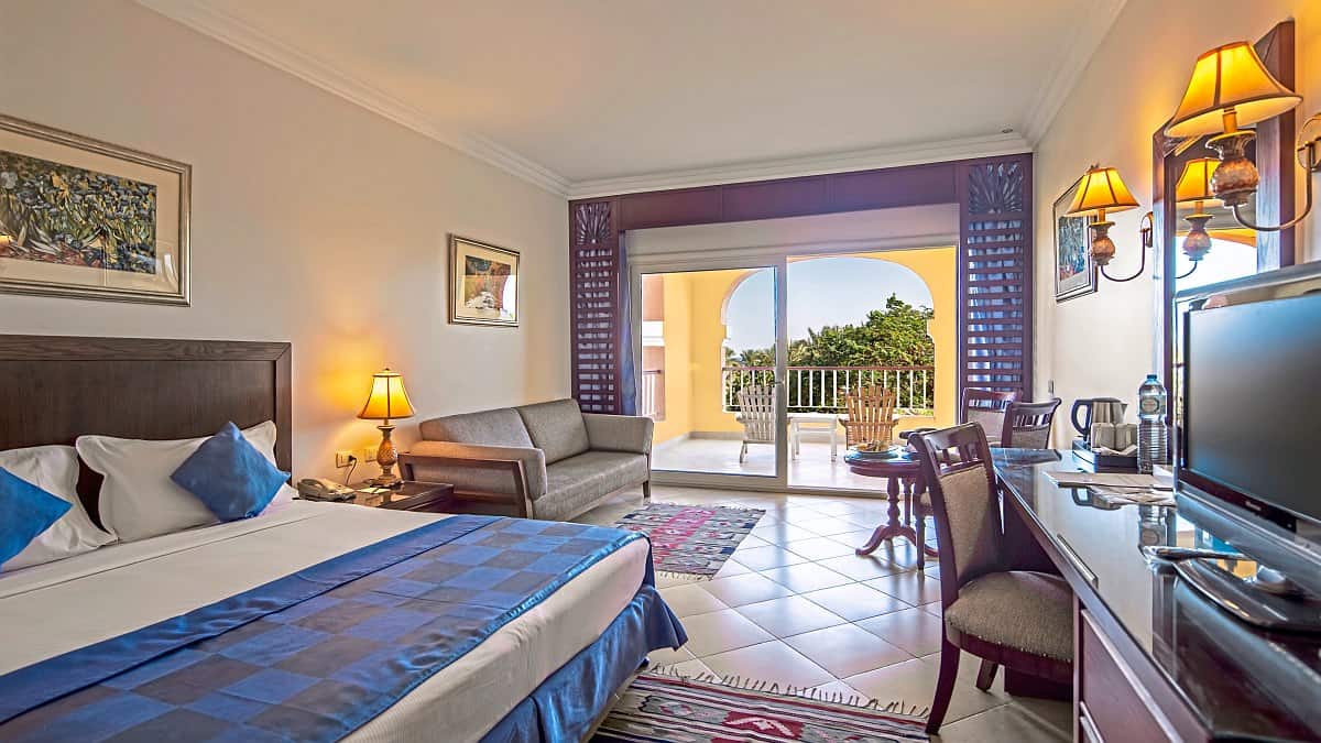 Die Zimmer sind etwa 26 bis 30 Quadratmeter groß und unter anderem mit Telefon, TV, Minibar, Klimaanlage, Safe und französischem Balkon ausgestattet. Bei Bedarf wird euch auch ein Babybett zur Verfügung gestellt (es gibt übrigens auch Kinderanimation und einen Kidsclub).
