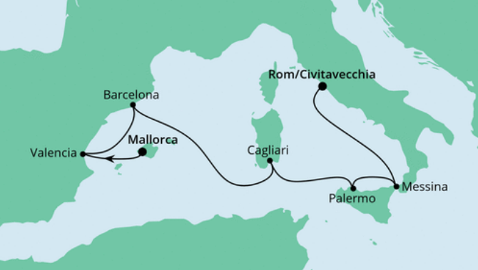 Für Kurzentschlossene hat AIDA gerade ein spannendes Angebot für eine Kreuzfahrt von Mallorca nach Rom in petto. Am 19. Februar 2022 geht es für 9 Tage bzw. 8 Nächte auf See und ihr besucht auf der Fahrt unter anderem Sardinien und Barcelona. Preislich geht es bei 429€ p.P. für die Innenkabine los. Die Außenkabine kostet 449€ und die Balkonkabine 479€ pro Person. Wie auch immer ihr euch entscheidet, Vollpension und Trinkgelder sind inklusive.