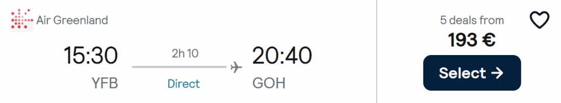 Neuerdings sind auf dieser exotischen Strecke auch Tickets für Ende Juni bis September 2026 buchbar. Von Kanada nach Grönland ergeben sich Preise ab 193€ inklusive 20 kg Freigepäck, in der Gegenrichtung ab 261€.