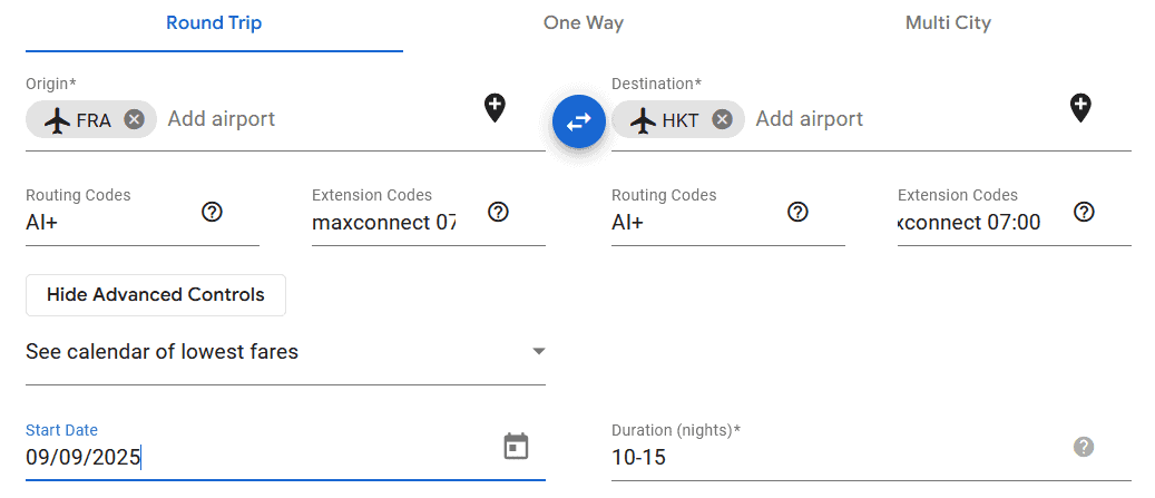 Verwendet zur Buchung über Kayak oder Skyscanner gerne folgendes Formular. Verfügbarkeiten gibt es theoretisch bis November 2025, das weicht aber je nach Ziel ab. Mehr dazu unten.