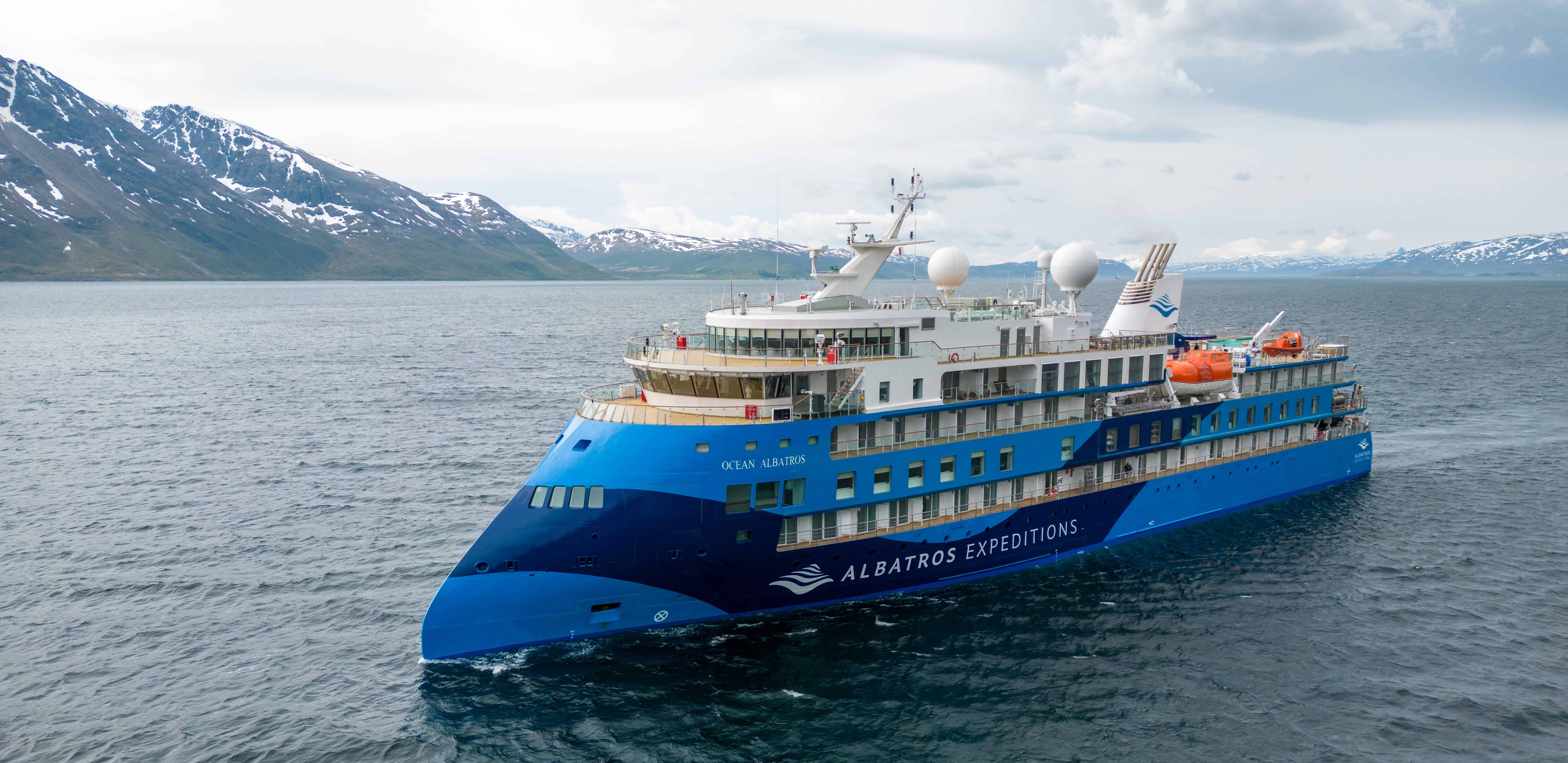 Die MS Ocean Albatros wurde 2023 gebaut und ist 104,4 Meter lang sowie 18,4 Meter breit. Das Expeditionsschiff bietet Platz für maximal 189 Passagiere und fährt unter der Flagge von Portugal.