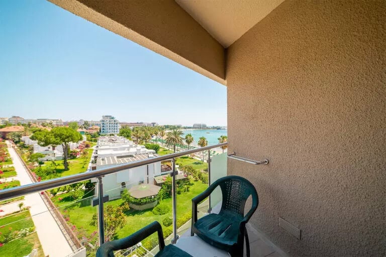 Die Anlage verfügt über einen Innen- und Außenpool und hat eine direkte Strandlage. Zu den weiteren Annehmlichkeiten zählen ein Restaurant, zwei Bars, eine Sauna sowie ein Tennisplatz. Das Angebot umfasst eine All-inclusive-Verpflegung mit Frühstück, Mittag- und Abendessen in Buffetform mit Spezialitäten der türkischen und internationalen Küche.