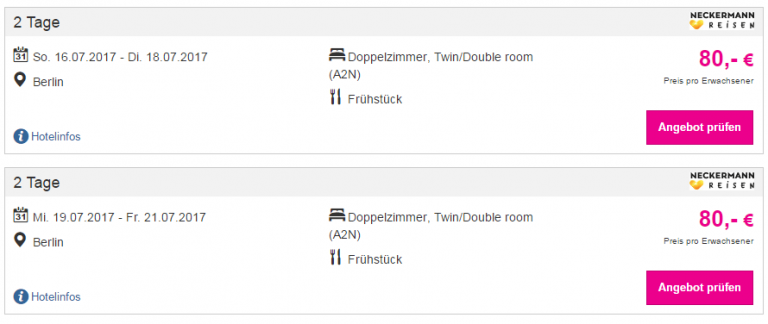 Auch für die mehrere Nächte finden sich Angebote zum gleichen Preis: