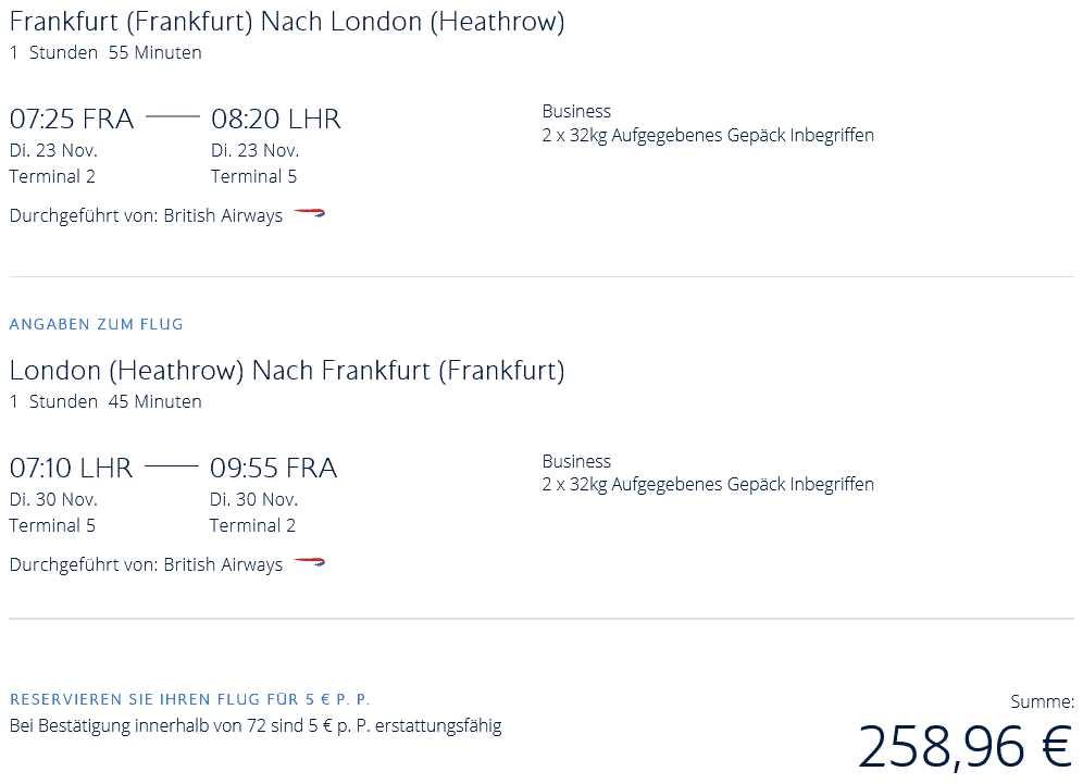 - BA 908 LHR-FRA: 15:55 – 18:40 Uhr