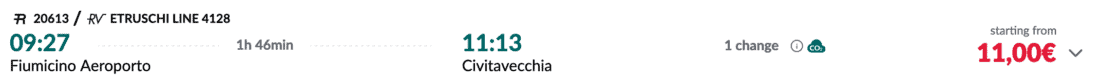 Für die Fahrt vom Flughafen Fiumicino nach Civitavecchia könnt ihr die Züge der italienischen Bahn Trenitalia nutzen. Tickets auf dieser Route sind bereits ab 11€ erhältlich: