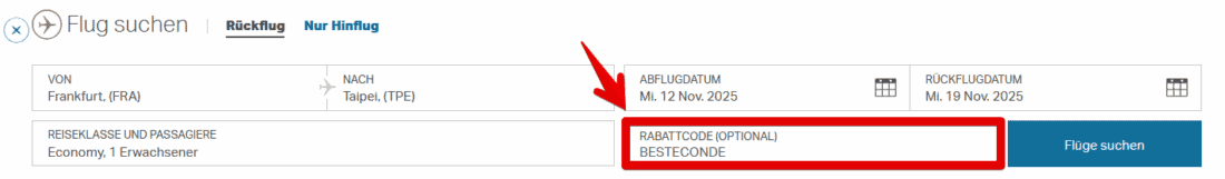 Günstige Termine könnt ihr über unseren Kalender oben oder mithilfe von Google Flights (Anleitung) finden. Buchen könnt ihr anschließend direkt bei Cathay Pacific. Die Eingabe des Gutscheincodes BESTECONDE