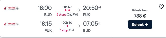 Aktuell gibt es von China Eastern günstige Premium-Economy-Tickets von Budapest zu verschiedenen Zielen in Japan & Korea. Bei Buchung über OTAs könnt ihr diese ab 738€ roundtrip buchen. Inkludiert sind 2x 23kg Aufgabegepäck. Verfügbarkeiten lassen sich bis Ende 2024 finden.