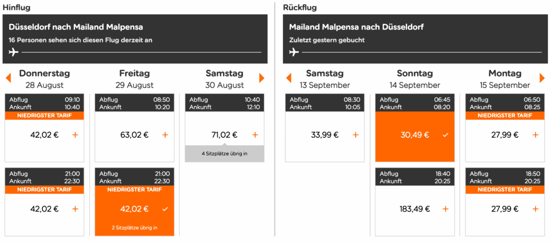 Die Kreuzfahrt startet und endet in Savona. Für die An- und Abreise zum Schiff sind in den meisten Fällen Flüge nach Mailand am günstigsten. Der nächstgelegene Flughafen ist Genua, hier müsstet ihr allerdings ein höheres Budget einplanen. Eine Option sind Verbindungen mit Easyjet mit Hinflug am 29. August und Rückflug am 14. September 2025. Diese Kombination ist momentan ab 73€ (zzgl. insgesamt 106€ für 23 kg Aufgabegepäck) buchbar: