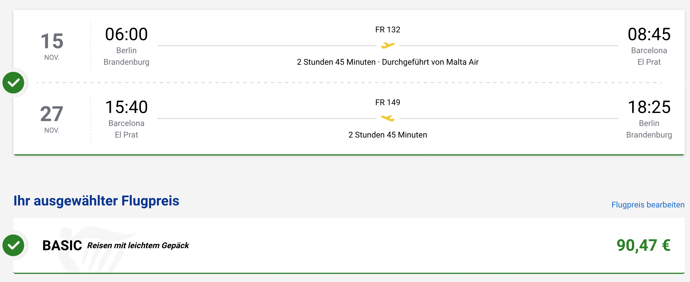 Die Kreuzfahrt startet und endet in Barcelona. Zur An- und Abreise könnt ihr die Direktflüge mit Ryanair ab Berlin nutzen. Diese sind passend zur Kreuzfahrt ab 91€ (zzgl. insgesamt 54€ für 20 kg Aufgabegepäck) buchbar: