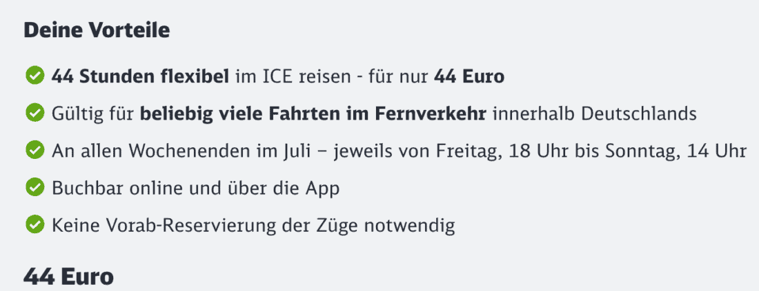 Im Gegensatz zu regulären Fernverkehrsangeboten gibt es beim 44-Stunden-Ticket die folgenden Einschränkungen: