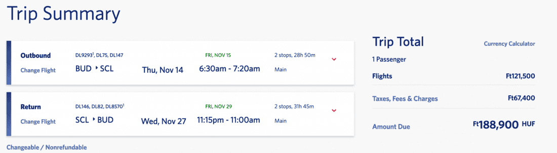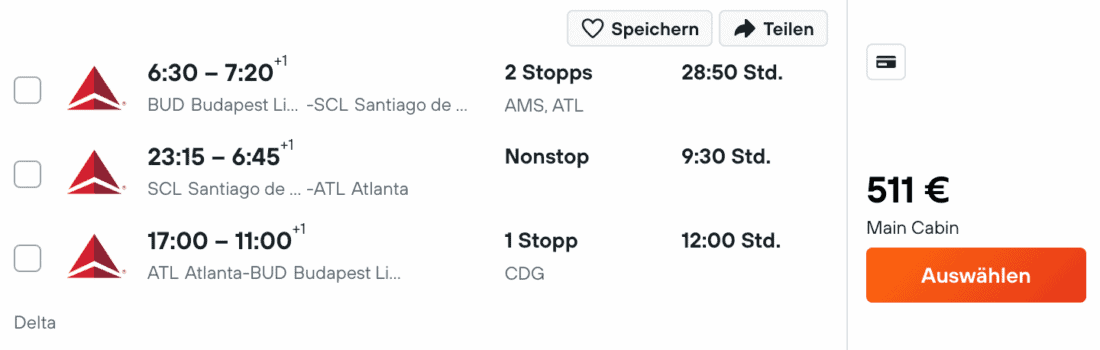 Übrigens habt ihr auch die Möglichkeit, für ca. 100€ Aufpreis einen Gabelflug mit Start in Budapest und Ziel in Frankfurt zu buchen. So ergibt sich für Flüge nach Santiago de Chile ein Preis in Höhe von 575€.