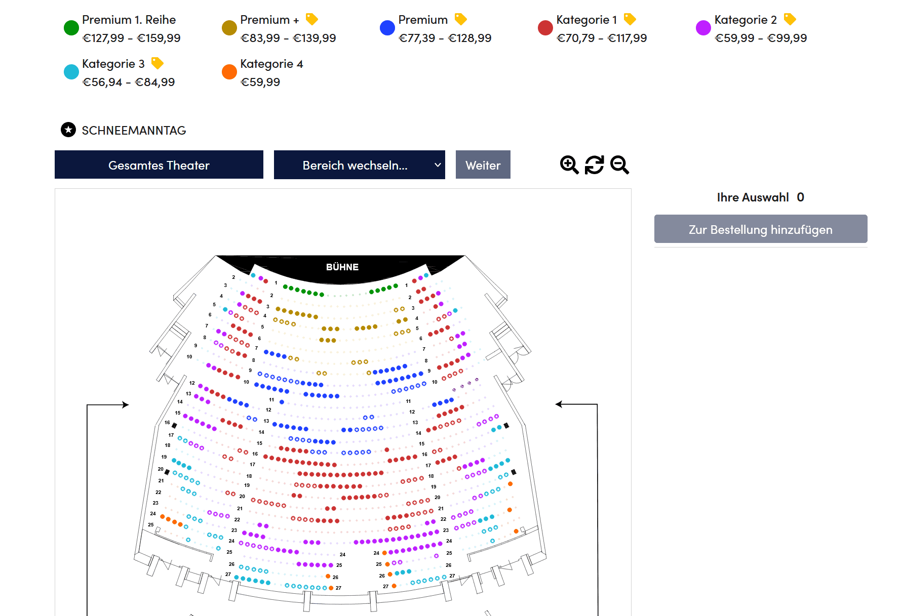 Danach werden euch die Preise für die jeweiligen Kategorien und der Sitzplan angezeigt: