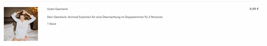 Hattest du auch dort den Gutschein „HOTEL“ eingegeben, d.h. tauchte auf der Bestellbestätigung der Animod-Gutschein auf?