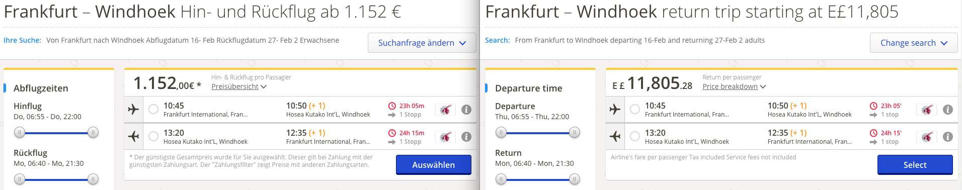 Von Frankfurt/Main nach Windhuk, Namibia für 11.805 EGP = umgerechnet 681€ oder 1.152€ auf eDreams.de