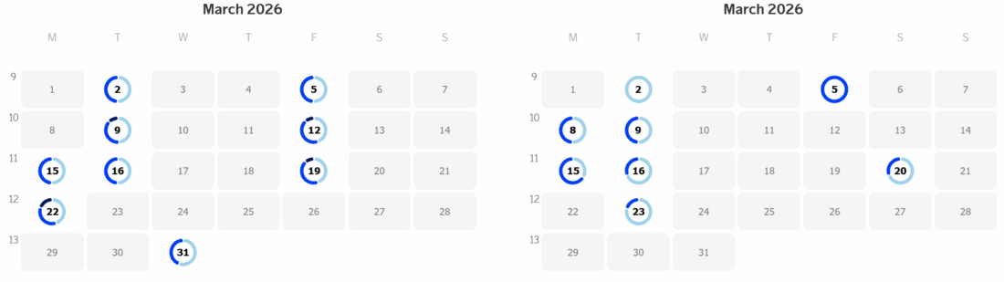 Die Verfügbarkeiten im Kalender werden nur einmal täglich aktualisiert. Auf besonders nachgefragten Strecken (z.B. nach Tokio) sind sie daher nicht immer aktuell.