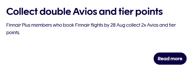 Finnair Plus spendiert doppelte Avios und Tier Points für (fast) alle Finnair-Flüge, die bis 28. August (finnische Zeit, 22:59 GMT) gebucht werden. Der Reisezeitraum geht deutlich länger und deckt Flüge bis August 2026 ab.