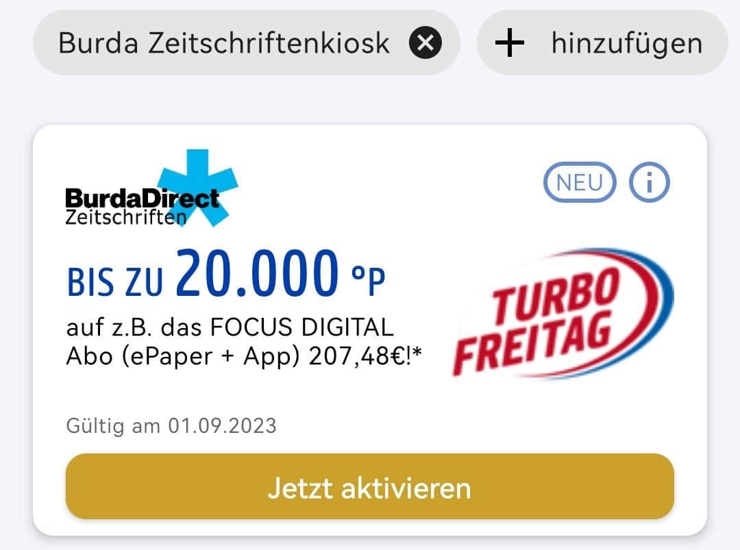 In der Vergangenheit gab es mehrfach Probleme mit ausbleibender oder zu niedriger Meilen- bzw. Punktegutschrift über Burda. Zumindest ist das Risiko hier aber vergleichsweise gering, da der Coupon so prominent von Payback beworben wird.