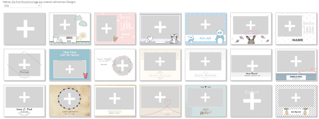 Ihr könnt bei Pixelnet aus zahlreichen Vorlagen wählen und müsst dann nur noch die Fotos wie gewünscht anordnen: