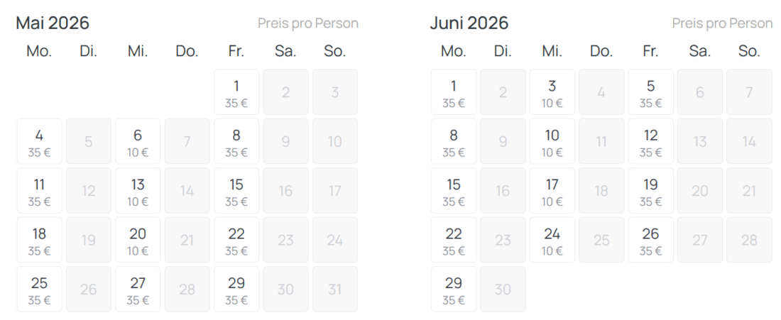 Mindestens genauso spannend wie die Nachricht selber sind derzeitigen Einführungspreise. Ab nur 10€ gibt es eine Fahrt von Deutschland in die Niederlande. Und zum gleichen Preis geht es dann auch wieder zurück. Verfügbar sind diese Preise für Reisen von März bis Juni 2026. Mit großem Koffer wird es aber mehr als doppelt so teuer.
