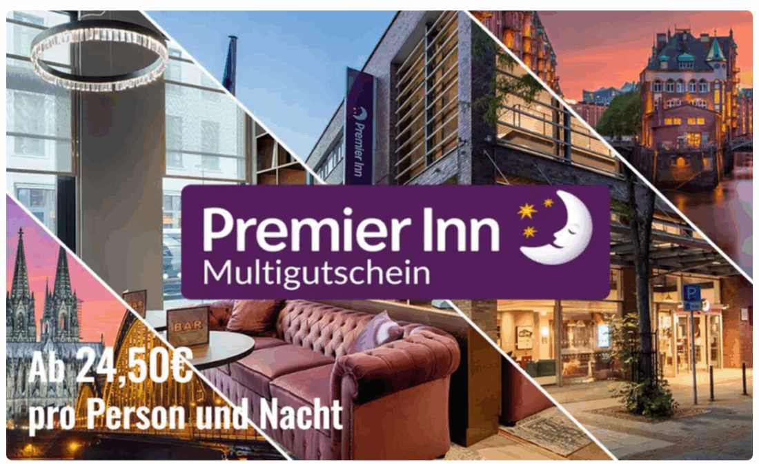 Groupon hat bei diesem Angebot nun die Möglichkeit entfernt, einen zusätzlichen Rabattgutschein einzulösen. Der Deal ist grundsätzlich aber noch verfügbar. Ihr könnt 2 Nächte in den Hotels von Premier Inn (je nach Verfügbarkeit) ab 99€ zzgl. City Tax buchen. Vorher lag der Bestpreis inklusive Gutschein bei 89,10€.