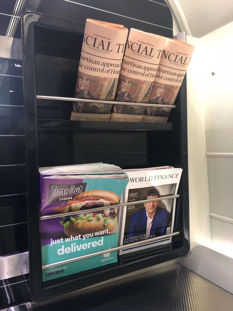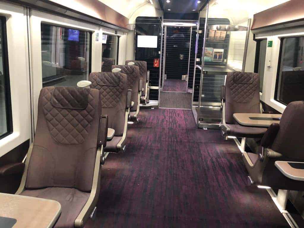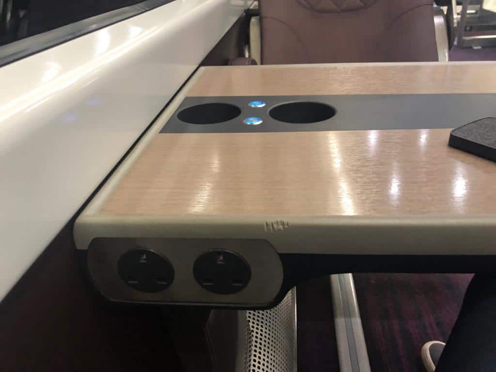 Die erste Klasse im Heathrow-Express verfügt über eine äußerst großzügige 1-1-Bestuhlung. Die Sitze sind trotzdem nicht super breit, bieten dafür aber praktisch unbegrenzte Beinfreiheit. An jedem Platz stehen Leseleuchten und zwei britische Stromsteckdosen bereit. Zudem liegen Zeitungen aus: Financial Times, Time Out London und World Finance. Der größte Vorteil dürfte allerdings sein, dass die 1. Klasse immer angenehm leer ist. Zu Stoßzeiten ist es in der 2. Klasse des Heathrow Express üblich, nur Stehplätze zu ergattern.