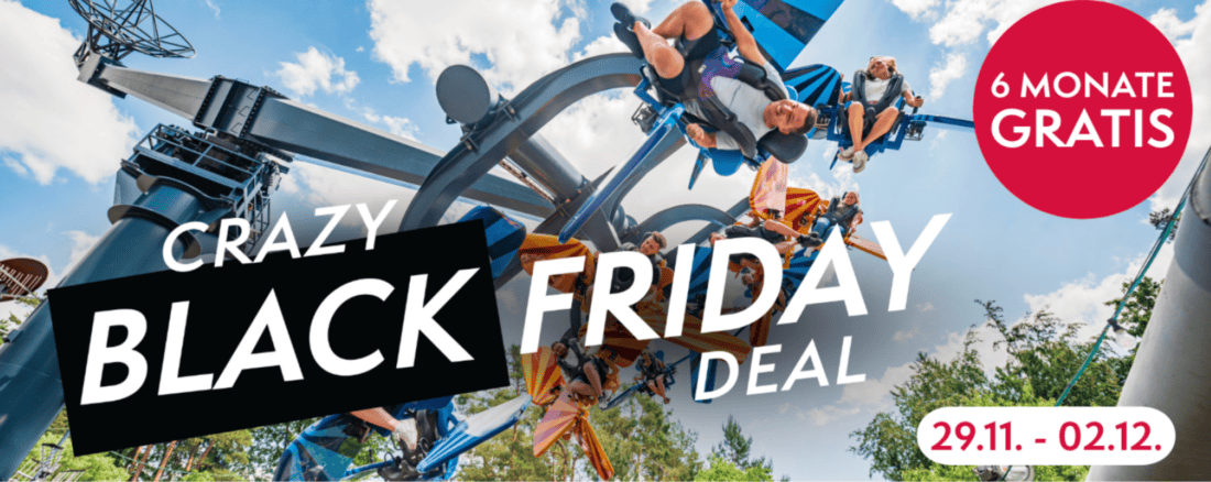 Der Holiday Park in Hassloch (Rheinland-Pfalz) hat sich pünktlich zum Black Friday ebenfalls eine Aktion einfallen lassen, die sich insbesondere an Stammkunden und all jene richtet, die viel Zeit in Freizeitparks verbringen. Aktuell könnt ihr euch eine Jahreskarte zum Preis von 120€ sichern und erhaltet dabei weitere 6 Monate zusätzlich. Somit könnt ihr den Holiday Park innerhalb von 18 Monaten so oft besuchen, wie ihr möchtet.
