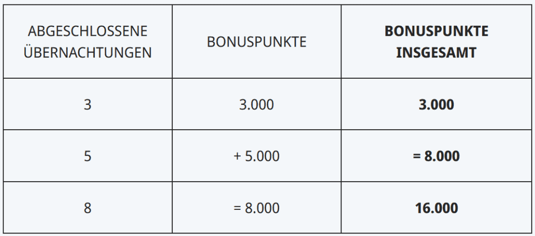 - Mit dem Angebot können maximal 16.000 Bonuspunkte gesammelt werden (für 8 Nächte)