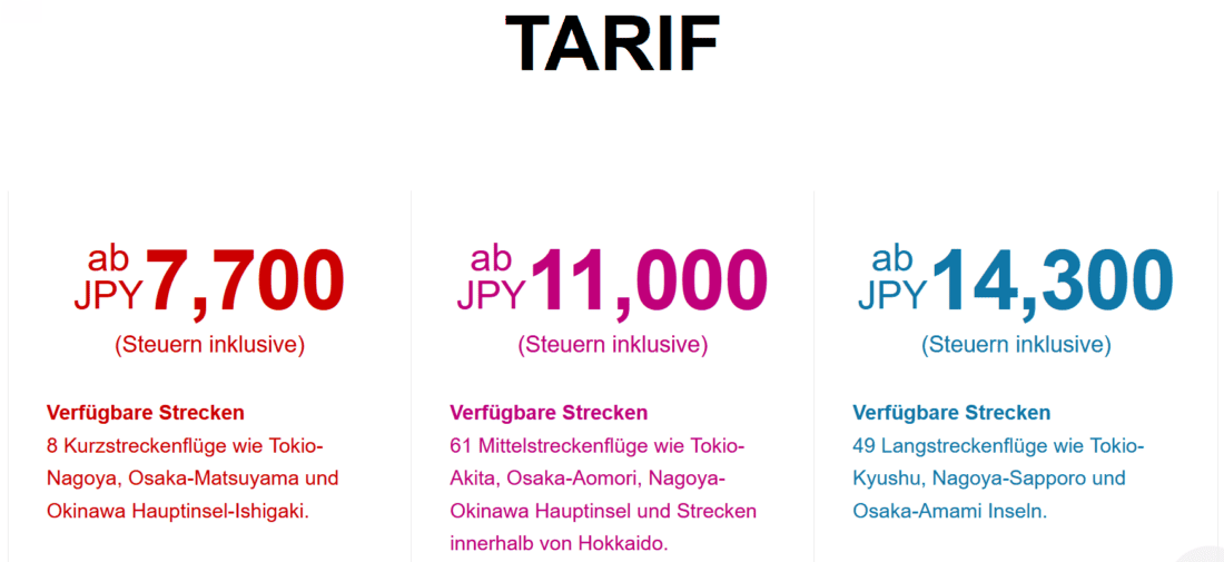 Die Airline bietet ebenfalls reduzierte Flüge für Touristen an und das Produkt ist vergleichbar mit ANA / JAL.