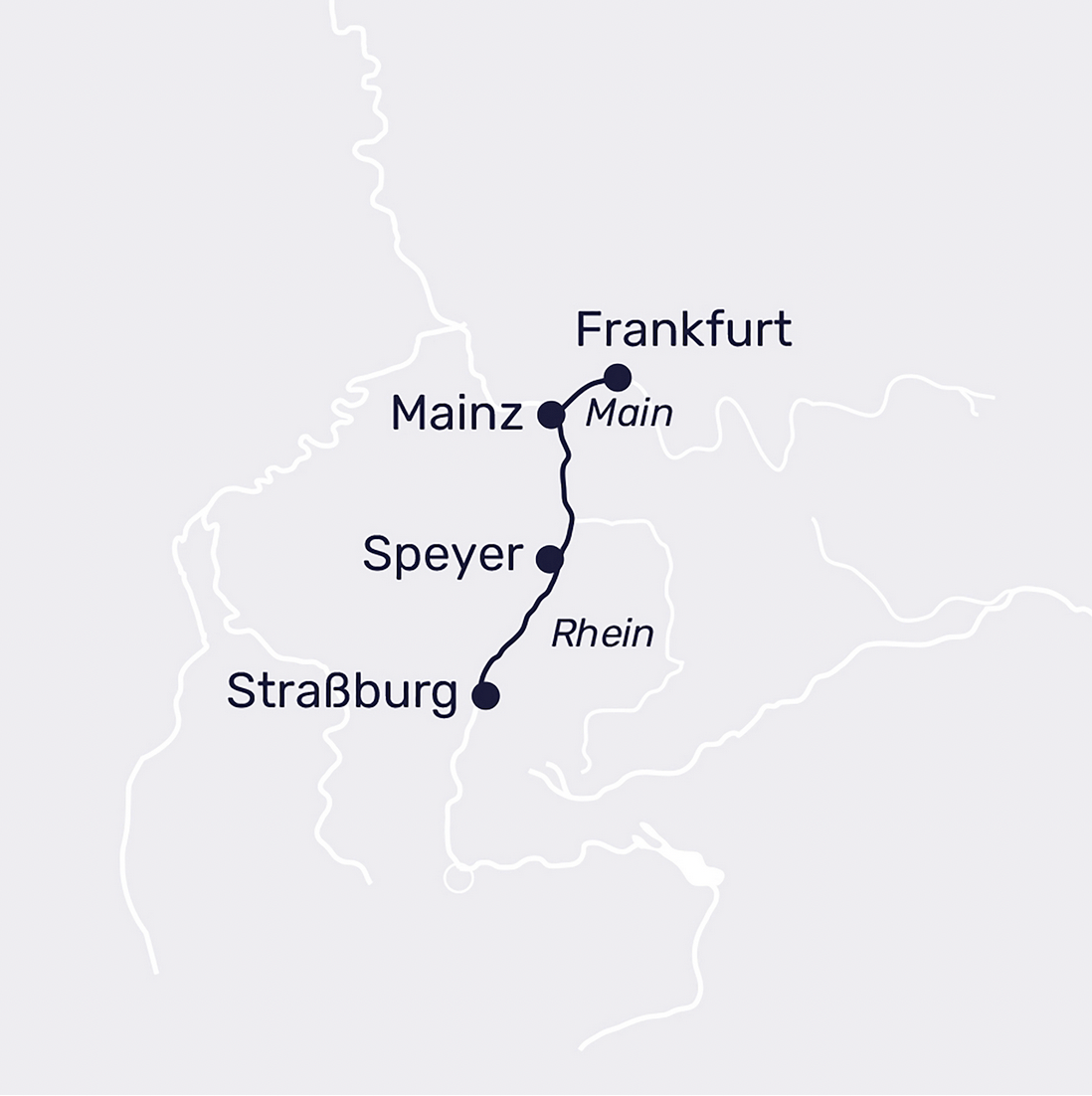 Eure Flusskreuzfahrt startet in Frankfurt. Die Metropole am Main ist Hessens größte Stadt und gilt als das wichtigste Finanzzentrum Deutschlands. Die Lady Cristina verlässt „Mainhattan“ gegen 17:00 Uhr und macht sich auf den Weg nach Speyer. Dort befindet sich mit dem Speyerer Dom die größte romanische Kirche, die bereits im Jahr 1981 in die Liste des UNESCO-Weltkulturerbes aufgenommen wurde.
