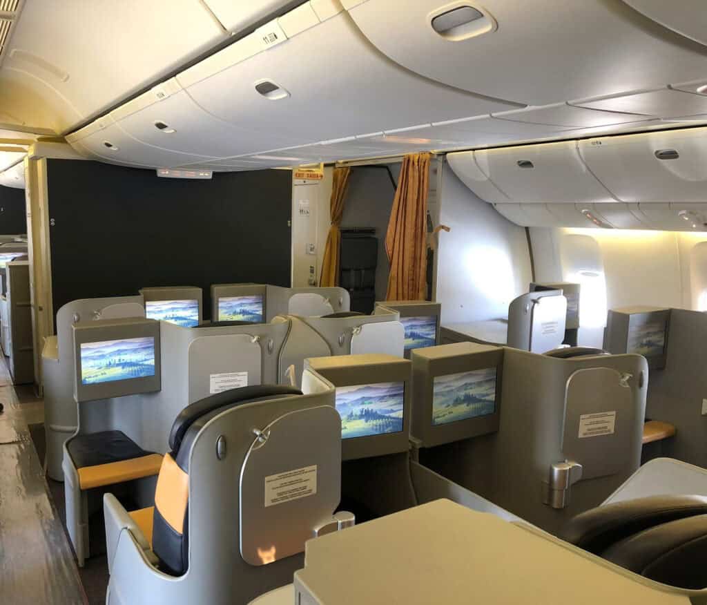 Zu beachten ist, dass fast alle Flüge von EuroAtlantic im Auftrag von LOT durchgeführt werden. Zum Einsatz kommen ehemalige Boeing 777 der Alitalia mit entsprechend alter Kabine. Allerdings ist die normale Business Class von LOT auch nicht unbedingt besser. Mehr zum Bordprodukt weiter unten.