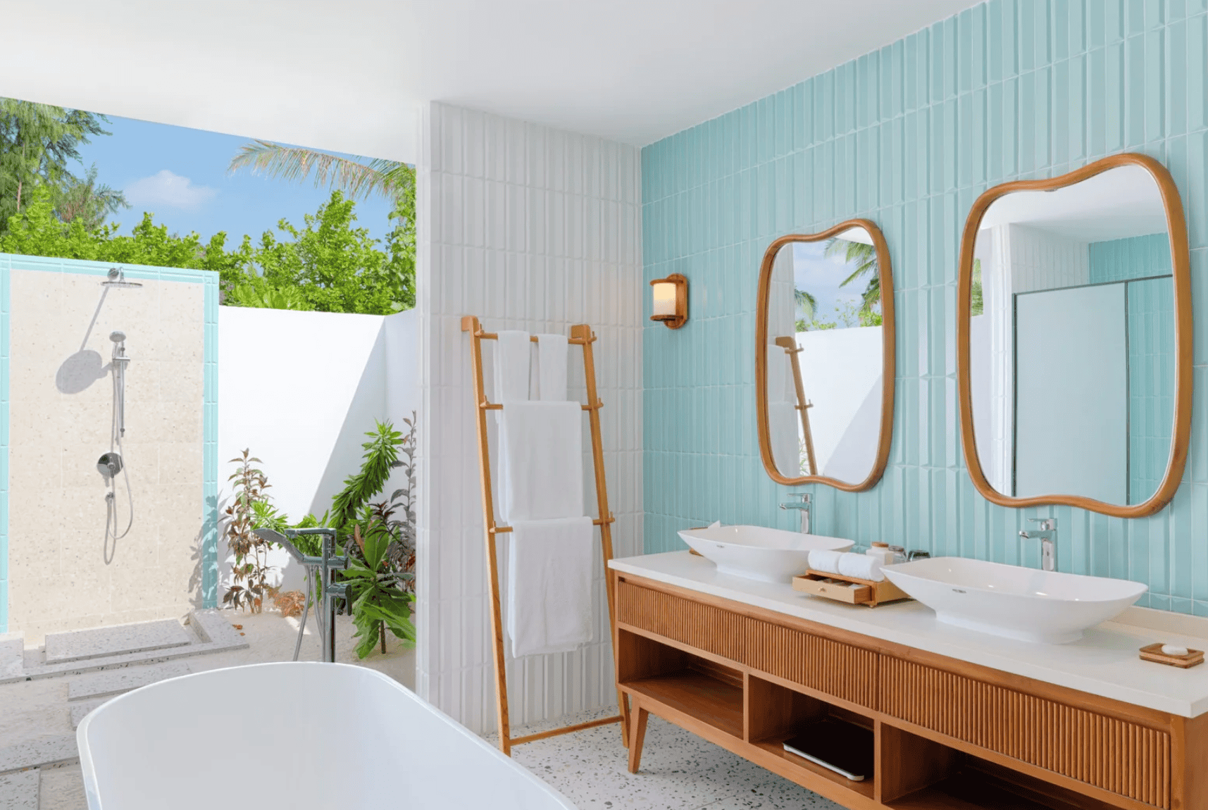 Die Unterkunft (4,7/5 bei Google) mit 127 Wohneinheiten hat erst diesen Sommer eröffnet und verfügt unter anderem über vier Restaurants, zwei Bars, einen großen Außenpool, Fitness- sowie Wellnessbereich und einen Tennisplatz. Es werden verschiedene Wassersportarten angeboten und die Umgebung eignet sich für Taucher. Wifi steht in der gesamten Anlage kostenfrei zur Verfügung und ein Shuttle verkehrt mehrmals täglich zwischen der Insel und dem internationalen Flughafen. Gegen Aufpreis könnt ihr dieses auch nur für euch buchen.